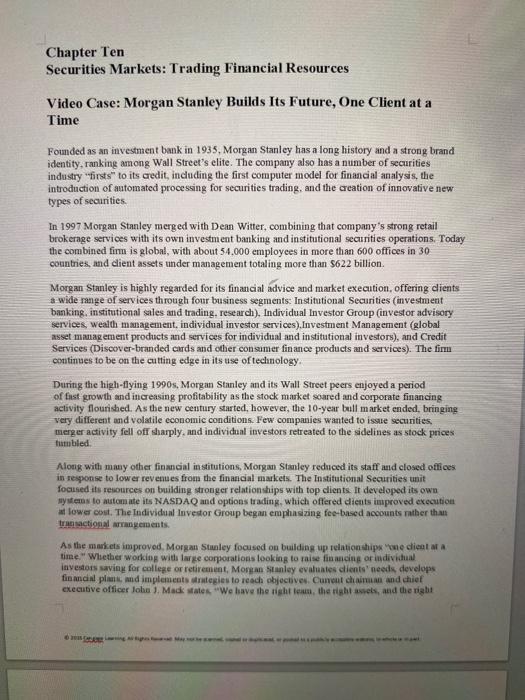 Solved Chapter Ten Securities Markets Trading Financial Chegg Com
